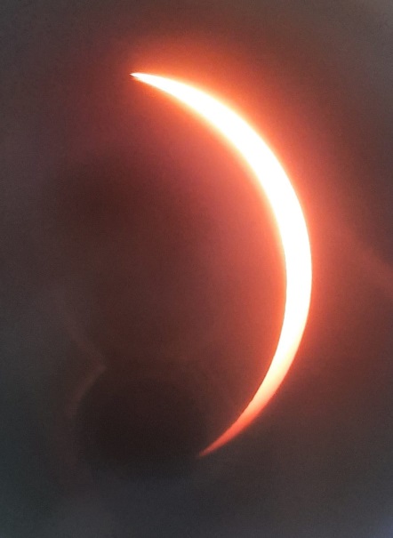 আমাদের গন্তব্য ছিল উত্তরপূর্ব টেক্সাসের ছোট্ট শহর বোগাটার (Bogata) একটা খোলা মাঠ। সেখানে পৌঁছে দেখা গেল যেন মেলা বসেছে। কচি-কাঁচা, লোকজনের ভিড়। ফোল্ডিং চেয়ার, খাবার দাবার, পুষ্যি কুকুর ইত্যাদি নিয়ে সব হাজির। টুপি, রোদ চশমা আর পূর্ণগ্রাস সূর্যগ্রহণ দেখার স্পেশাল চশমা নিয়ে সকলে প্রস্তুত। ছোটকুর কাকা-কাকিমা ইতিমধ্যে পৌঁছে গেছে। ছোটকুও যন্ত্রপাতি নিয়ে বসে গেল। আমিও এবার বেশ উত্তেজনা বোধ করলাম। ধীরে ধীরে এসে গেল সেই কাঙ্ক্ষিত মুহূর্ত । সূর্যের গ্রাস শুরু হল। প্রথমে আংশিক গ্রহণ। বিস্কুটের কোনা কামড়ানোর মতো সূর্যের একটা অংশ যেন অদৃশ্য হল। যে যেমনভাবে পারে দেখছে। কেউ টেলিস্কোপ লাগাচ্ছে, কেউ বা দূরবীনে চোখ রাখছে, কেউ বা চোখে বিশেষ চশমা লাগিয়ে ঘাসের ওপর শুয়ে দেখছে। গাছের নীচে পাতার ছায়ায় সূর্যের বিভিন্ন আকারের প্রতিচ্ছবি দেখা যাচ্ছে। দেখতে দেখতে সেই মাহেন্দ্রক্ষণ এসে গেল। চাঁদের ছায়া সূর্যকে ঢাকা দিতে দিতে আর সামান্যই বাকি রেখেছে। বিশেষ চশমার ভেতর দিয়ে দেখছি, আর সব কিছু অন্ধকার, কেবল সূর্যটা দেখতে পাচ্ছি— যেন দ্বিতীয়া বা তৃতীয়ার এক ফালি চাঁদের মতো, যার রঙটা হলুদ-কমলা। এর পরই শুরু হবে সূর্যের পূর্ণগ্রাস, যা দর্শন করতে দূর দূরান্ত থেকে কত মানুষ জড়ো হয়েছে এখানে।