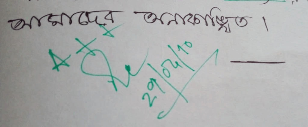 যেহেতু আমি হোস্টেলে থাকতাম, একদিন বাড়ি থেকে ফিরে শুনলাম- ম্যামের এই হোমওয়ার্ক অন্যান্য সহপাঠীরা লিখে জমা করে ফেলেছে।আমারই দেওয়া বাকি। 2010-এর এপ্রিল চলছে তখন। আমি লিখে জমা দিলাম সবার শেষে।